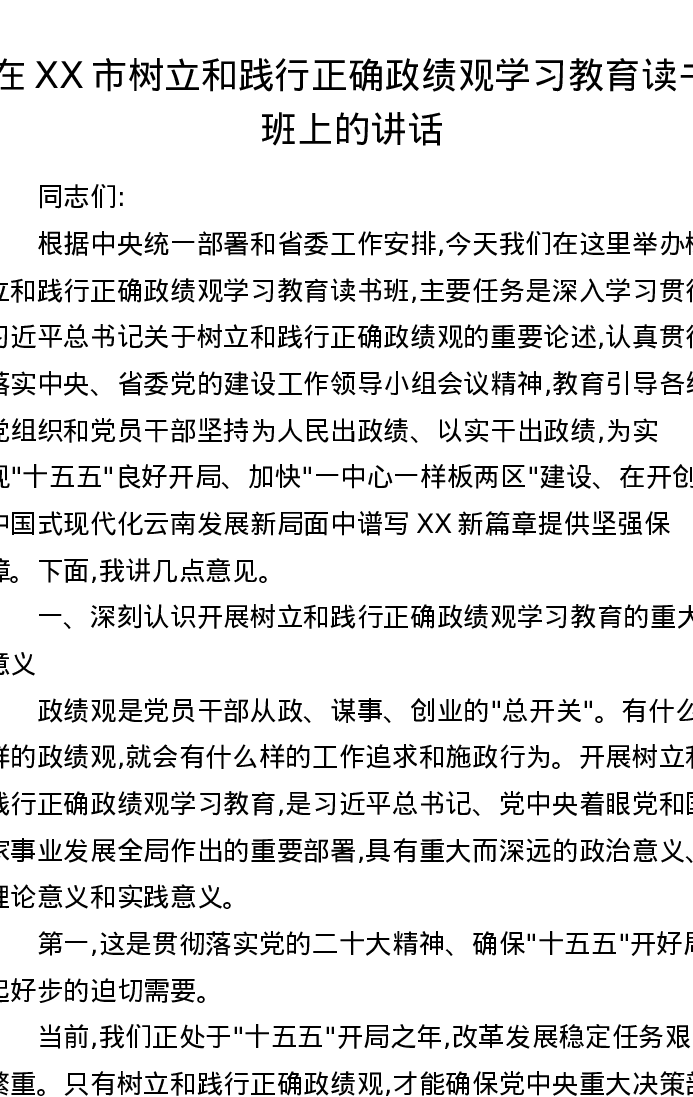 在XX市树立和践行正确ZJG学习教育读书班上的讲话