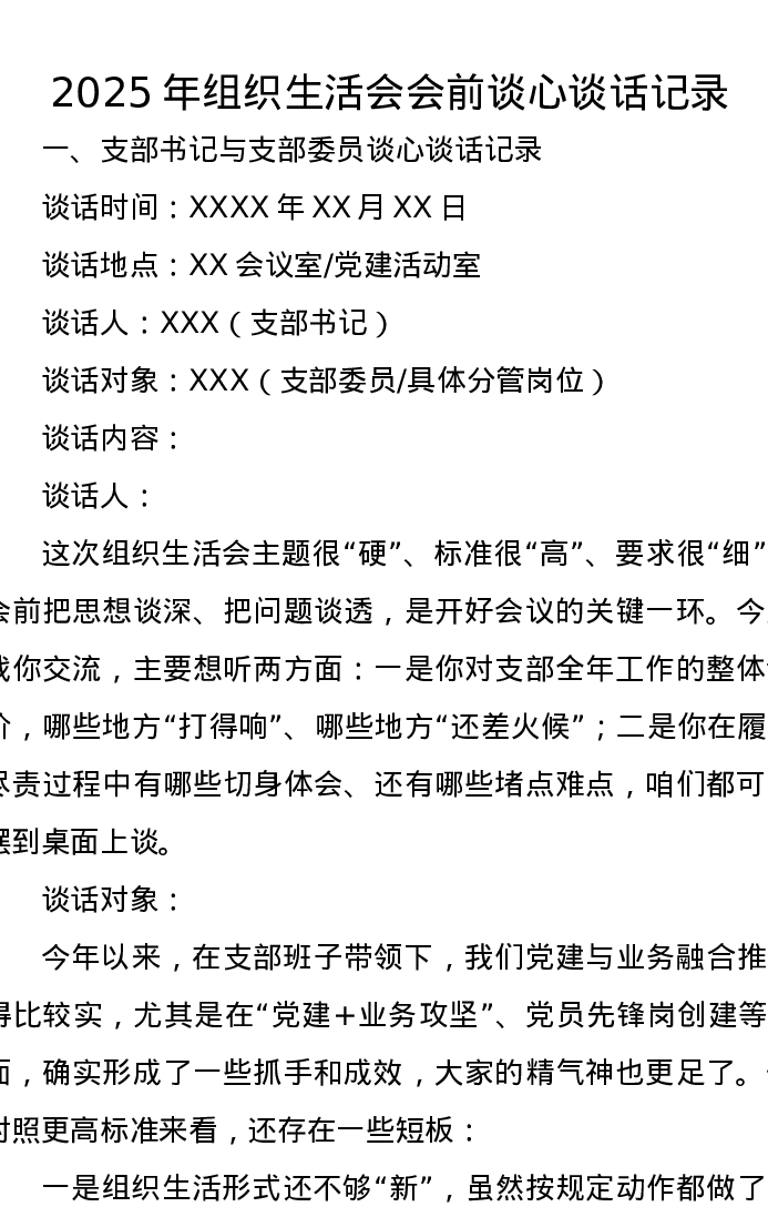 2025年组织xxx会前谈心谈话记录1