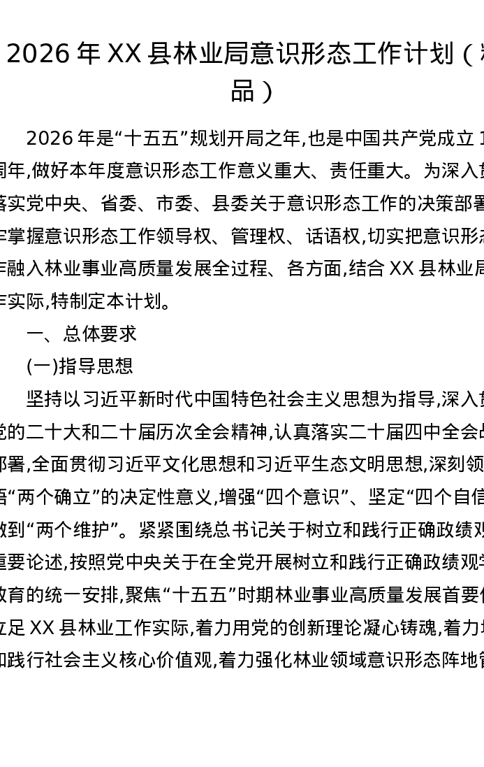 2026年XX县林业局意识形态工作计划