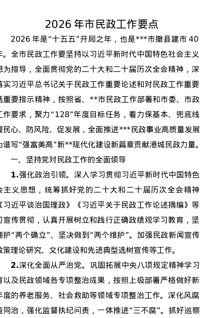 2026年市民政工作要点