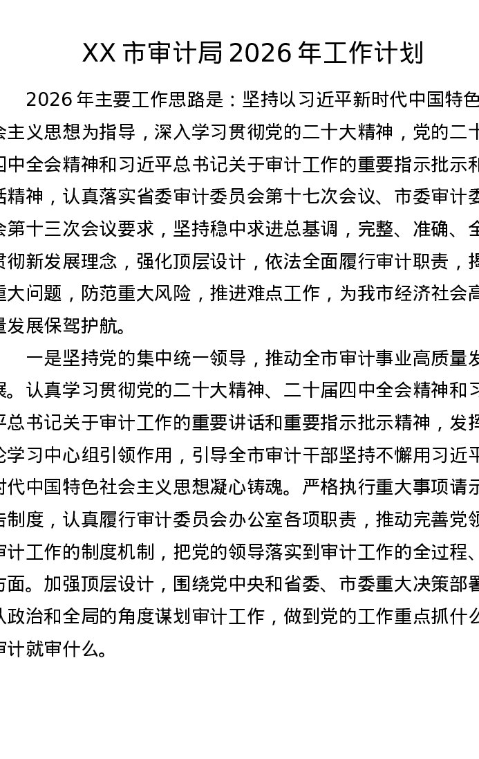 XX市审计局2026年工作计划