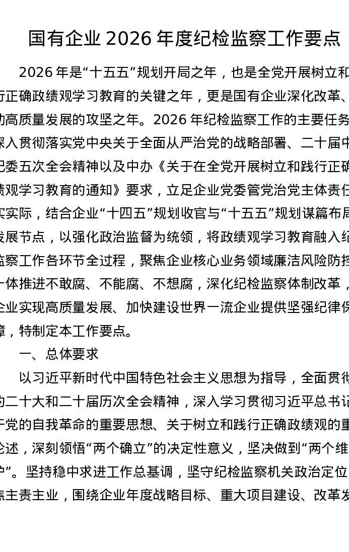 国有企业2026年度纪检监察工作要点