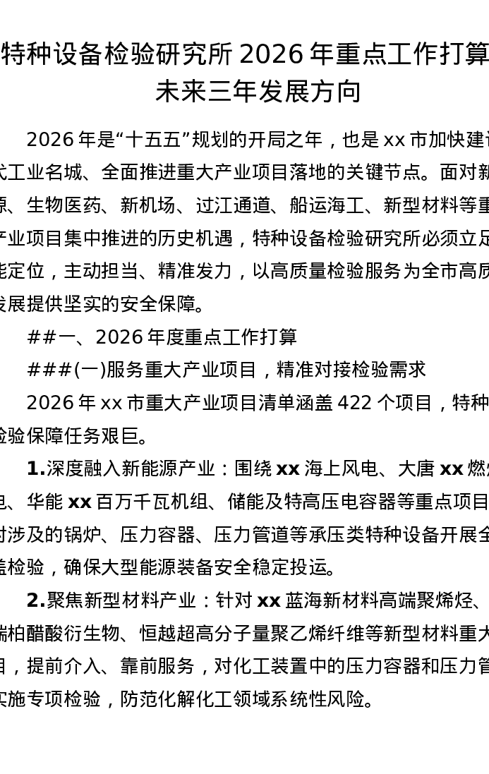 特种设备检验研究所2026年重点工作打算及未来三年发展方向