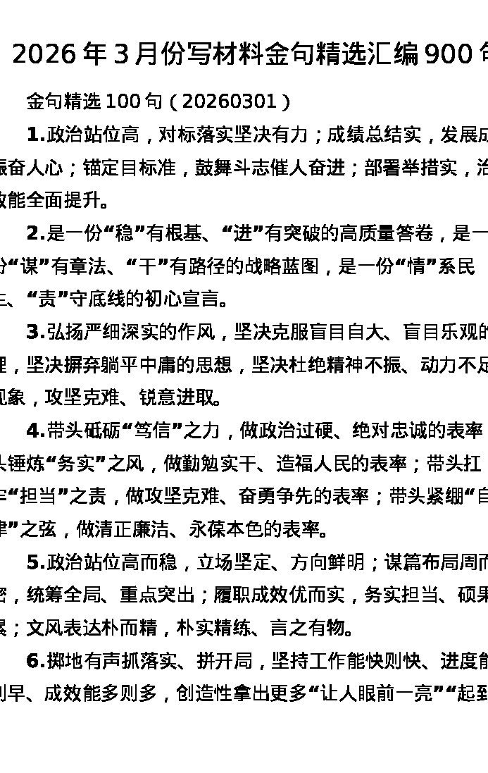2026年3月份写材料金句精选汇编900句