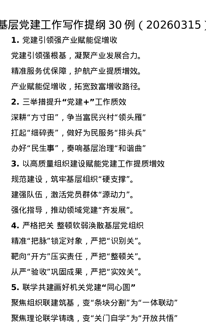 基层党建工作写作提纲30例(20260315)