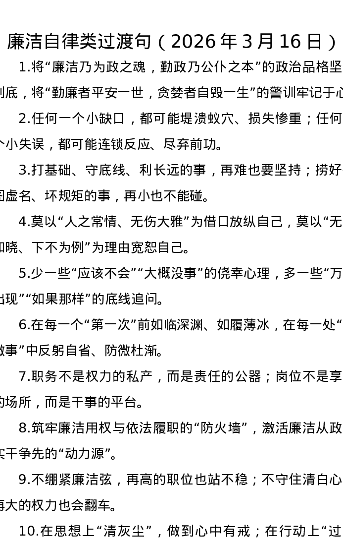 廉洁自律类过渡句(2026年3月16日)