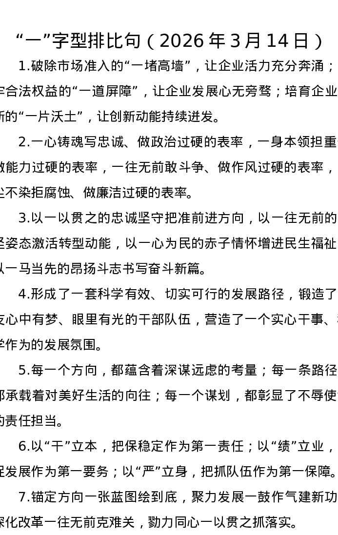 一字型排比句(2026年3月14日)