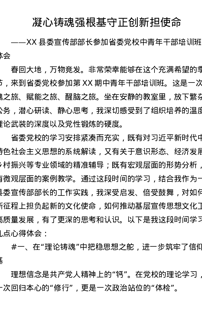 XX县委宣传部部长在省委党校中青班培训的心得体会(3405字)