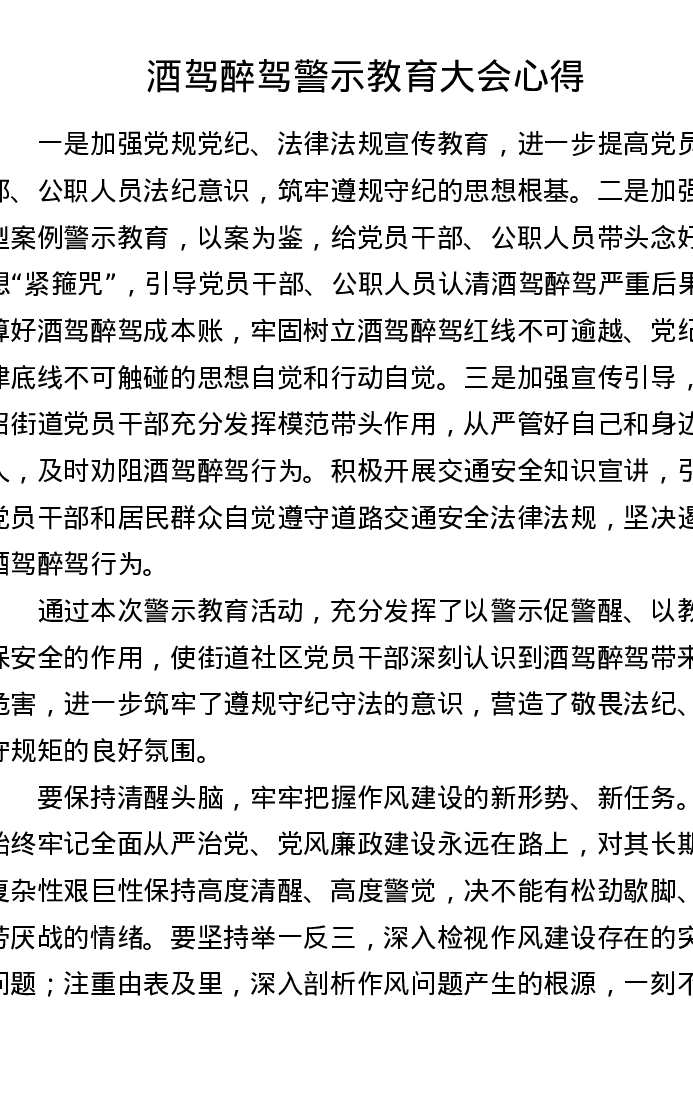 酒驾醉驾警示教育大会心得