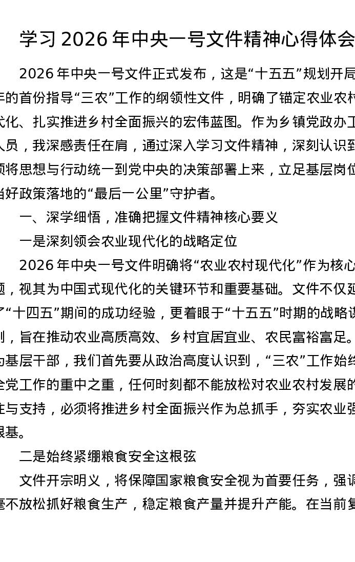 学习2026年中央一号文件精神心得体会