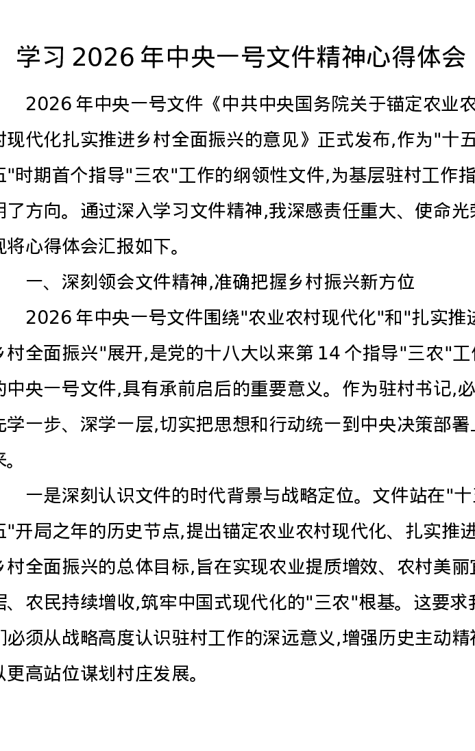 学习2026年中央一号文件精神心得体会1