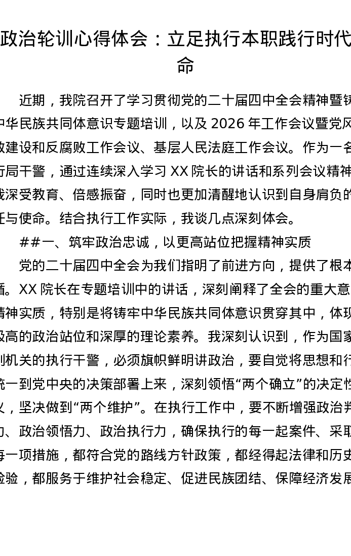 政治轮训心得体会:立足执行本职践行时代使命