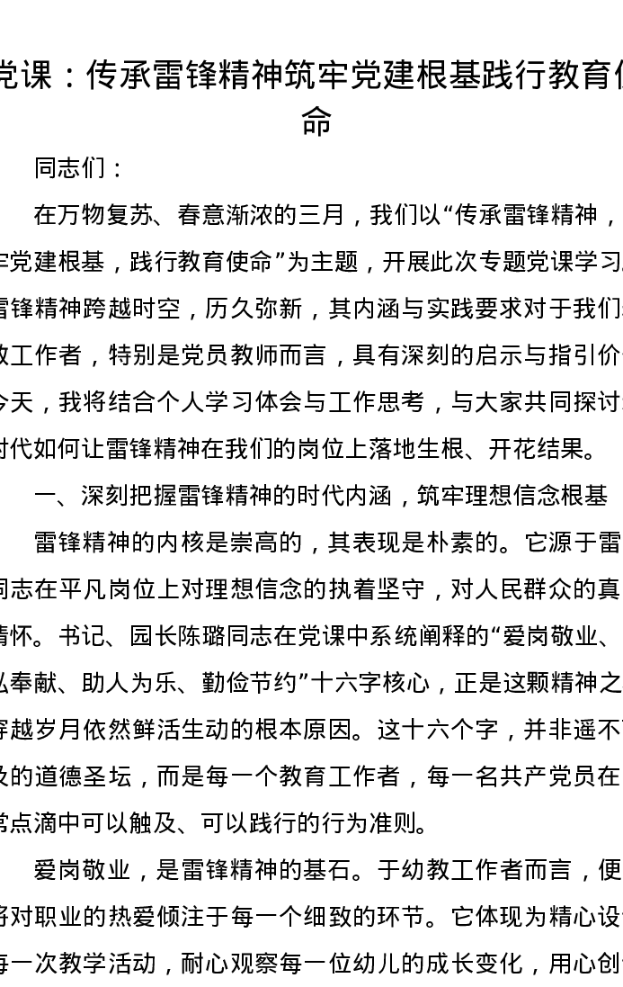 党课:传承雷锋精神 筑牢党建根基 践行教育使命