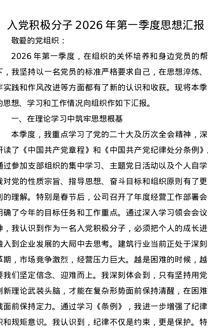 入党积极分子2026年第一季度思想汇报