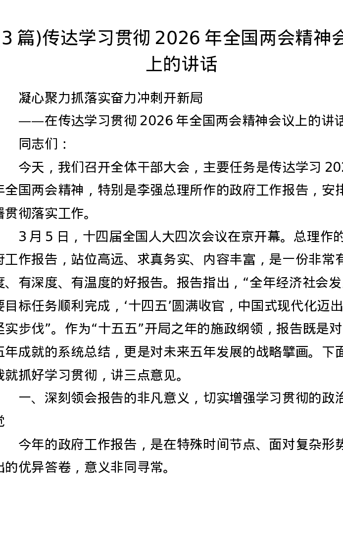 汇编:传达学习贯彻2026年全国两会精神会议上的讲话3篇