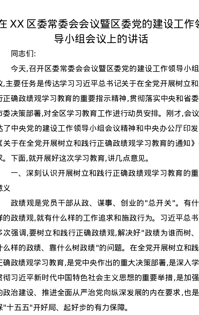 在XX区委常委会会议暨区委党的建设工作领导小组会议上的讲话2