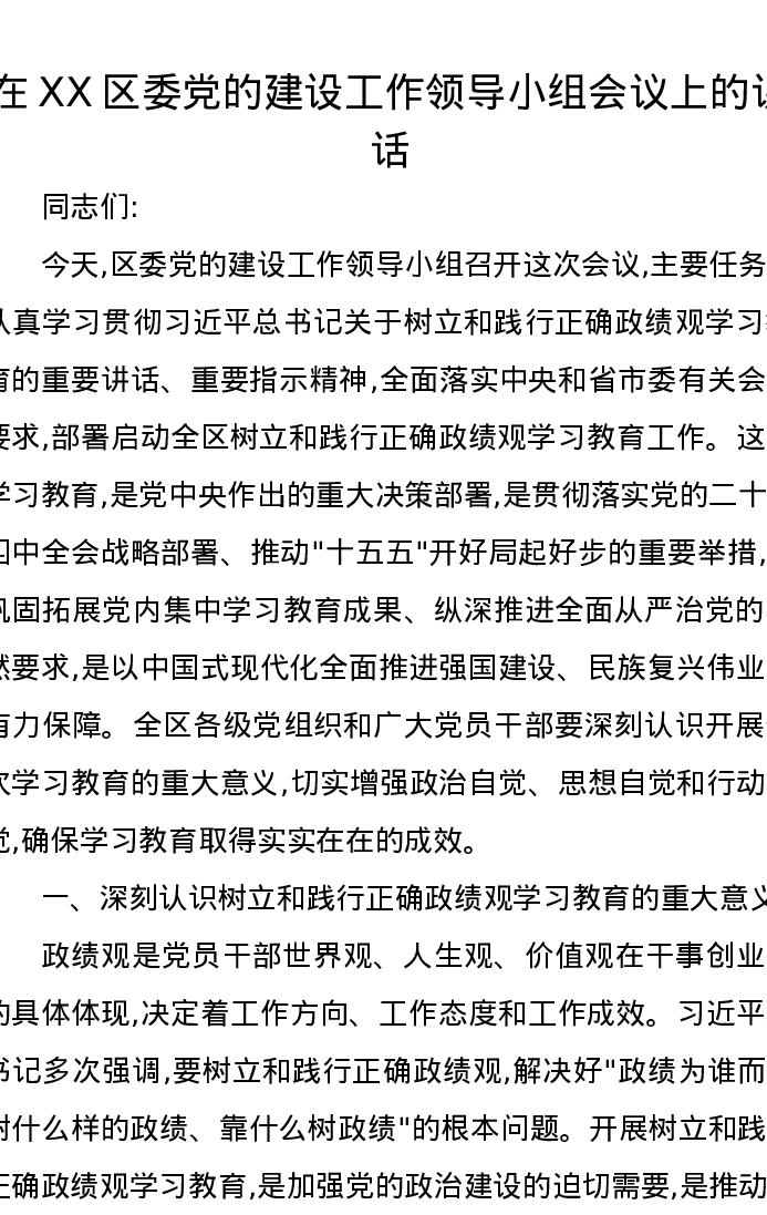 在XX区委党的建设工作领导小组会议上的讲话_2
