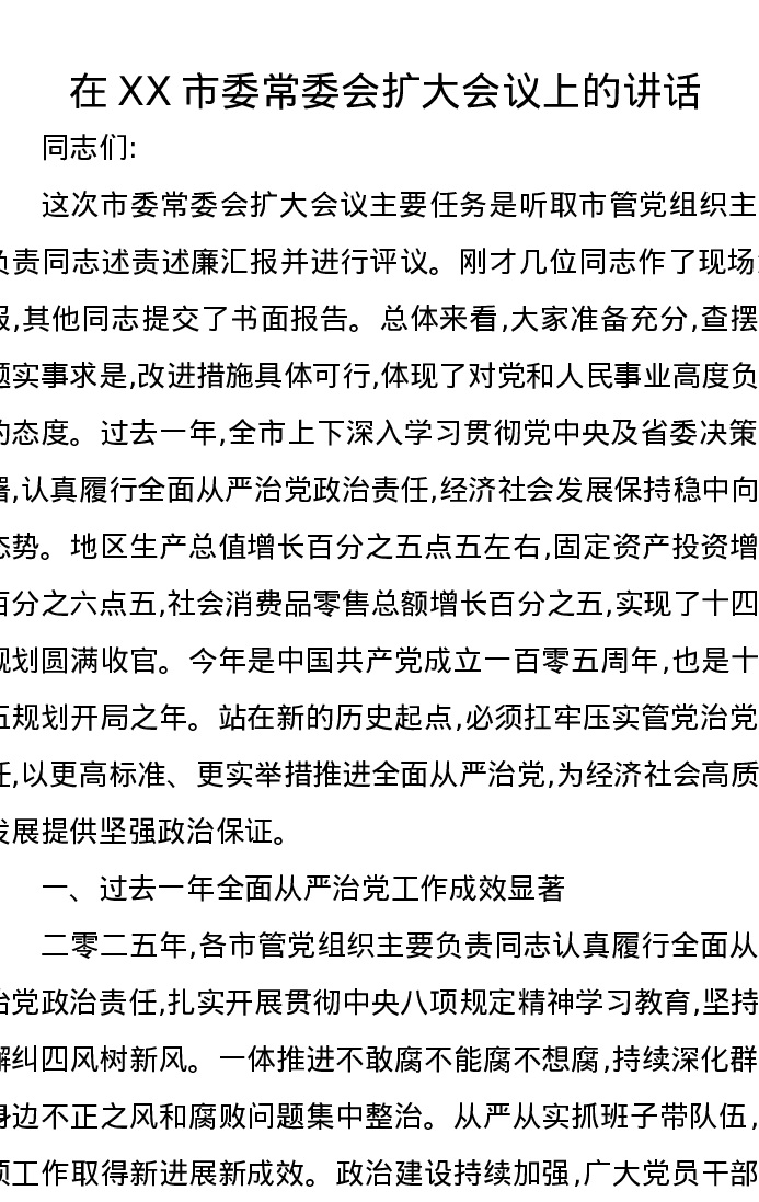 在XX市委常委会扩大会议上的讲话4