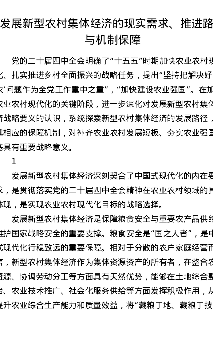 发展新型农村集体经济的现实需求、推进路径与机制保障