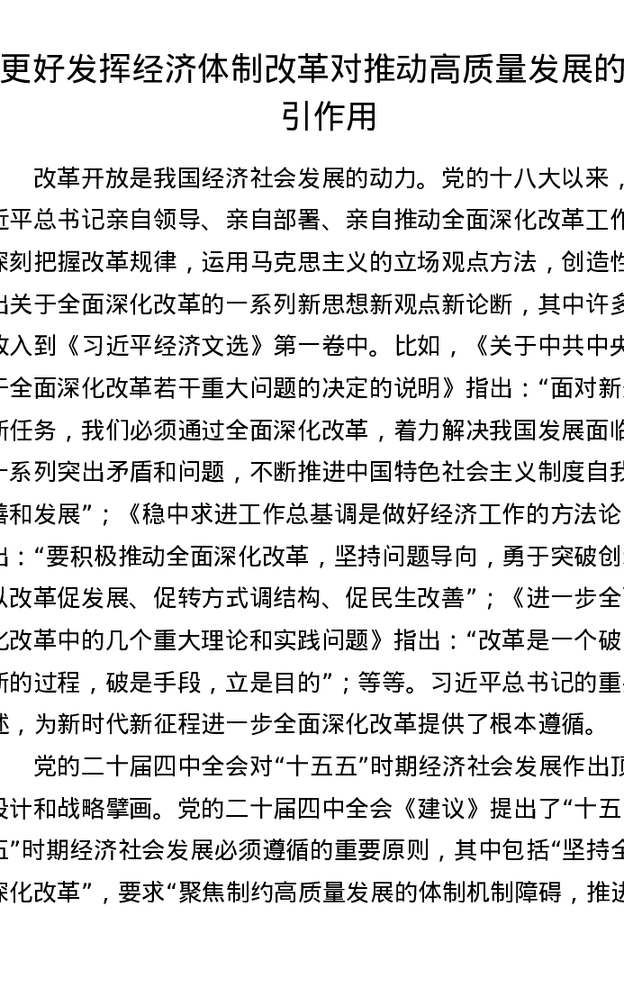 更好发挥经济体制改革对推动高质量发展的牵引作用