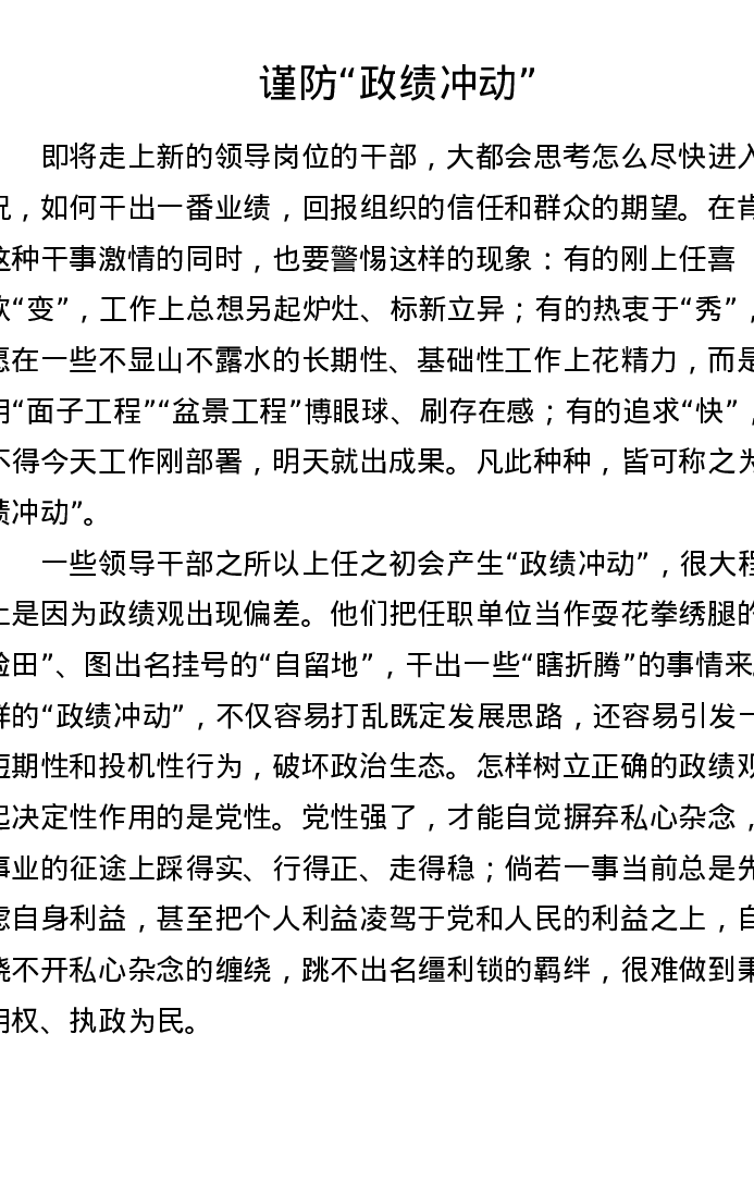 谨防政绩冲动