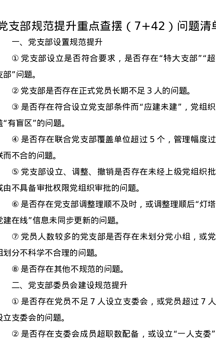 党支部规范提升重点查摆(7+42)问题清单