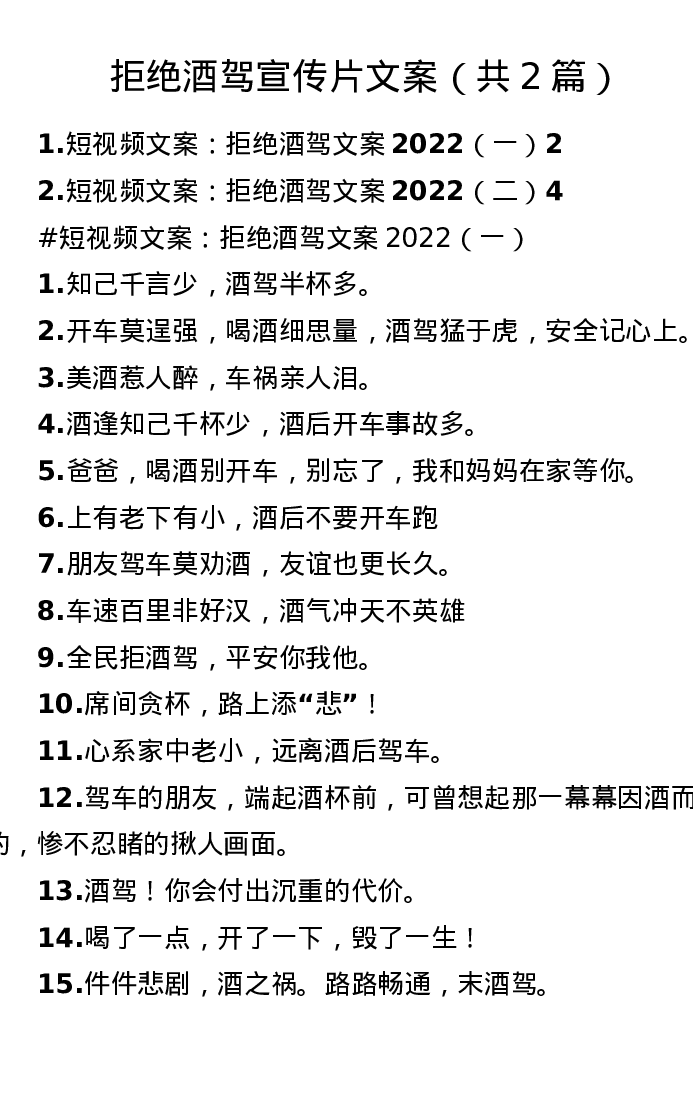 拒绝酒驾宣传片文案(共2篇)