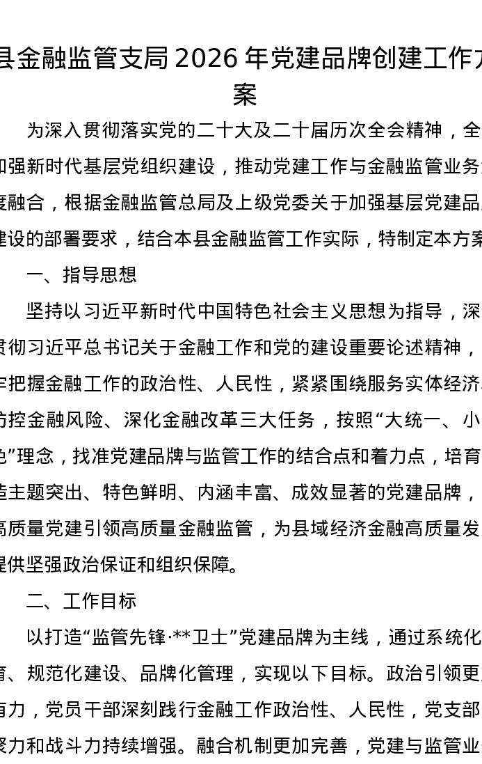 县金融监管支局2026年党建品牌创建工作方案