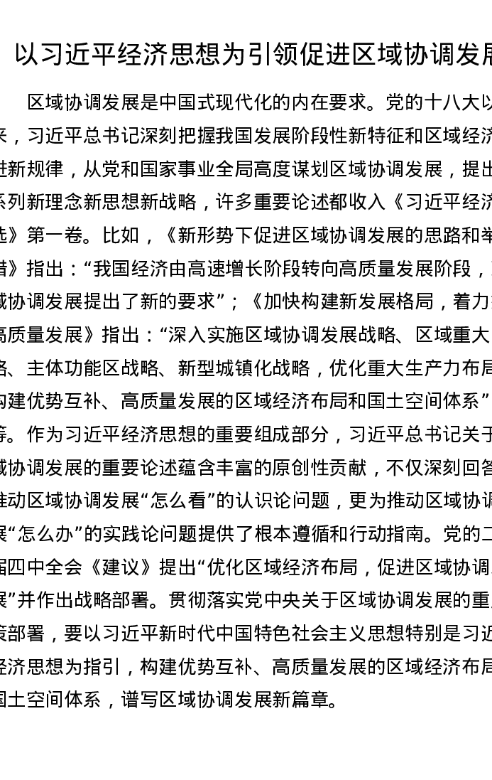调研报告:以总书记经济思想为引领促进区域协调发展