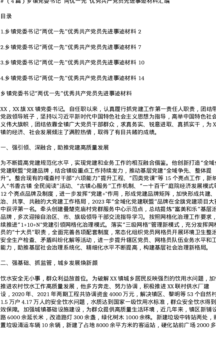 汇编:乡镇党委书记两优一先优秀共产党员先进事迹材料4篇
