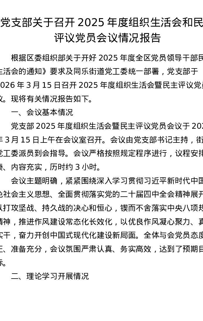 党支部关于召开2025年度组织xxx和民主评议党员会议情况报告