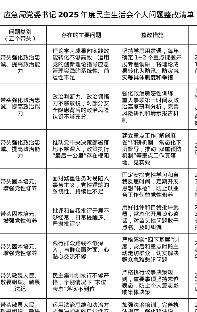应急局党委书记2025年度xxxxx个人问题整改清单