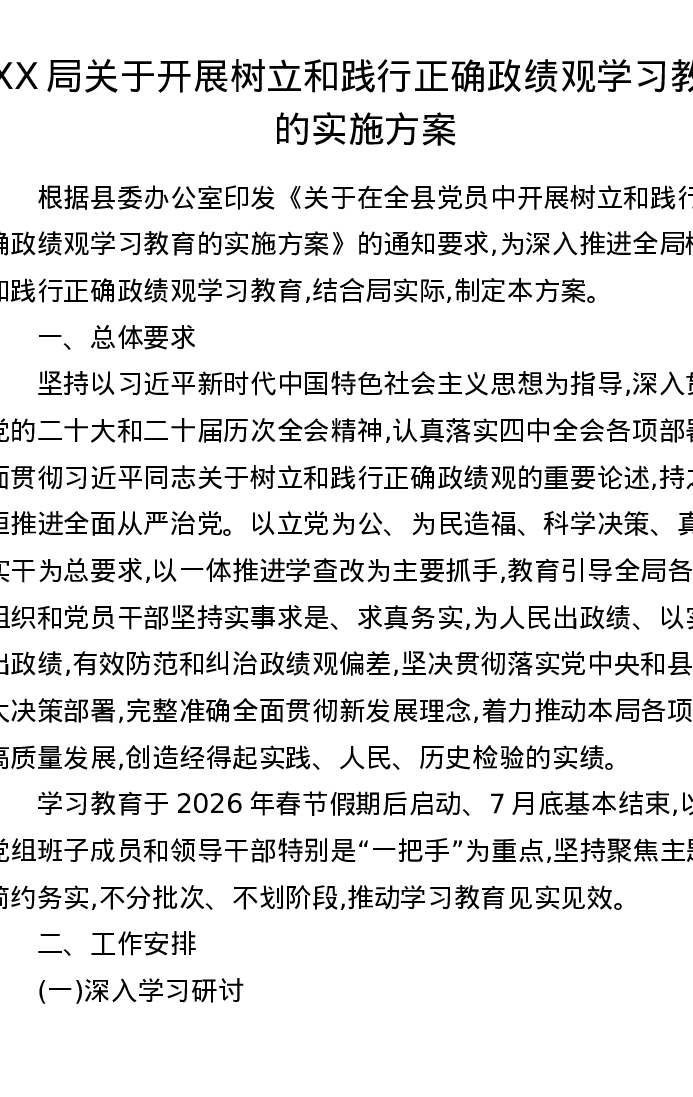 XX局关于开展树立和践行正确ZJG学习教育的实施方案