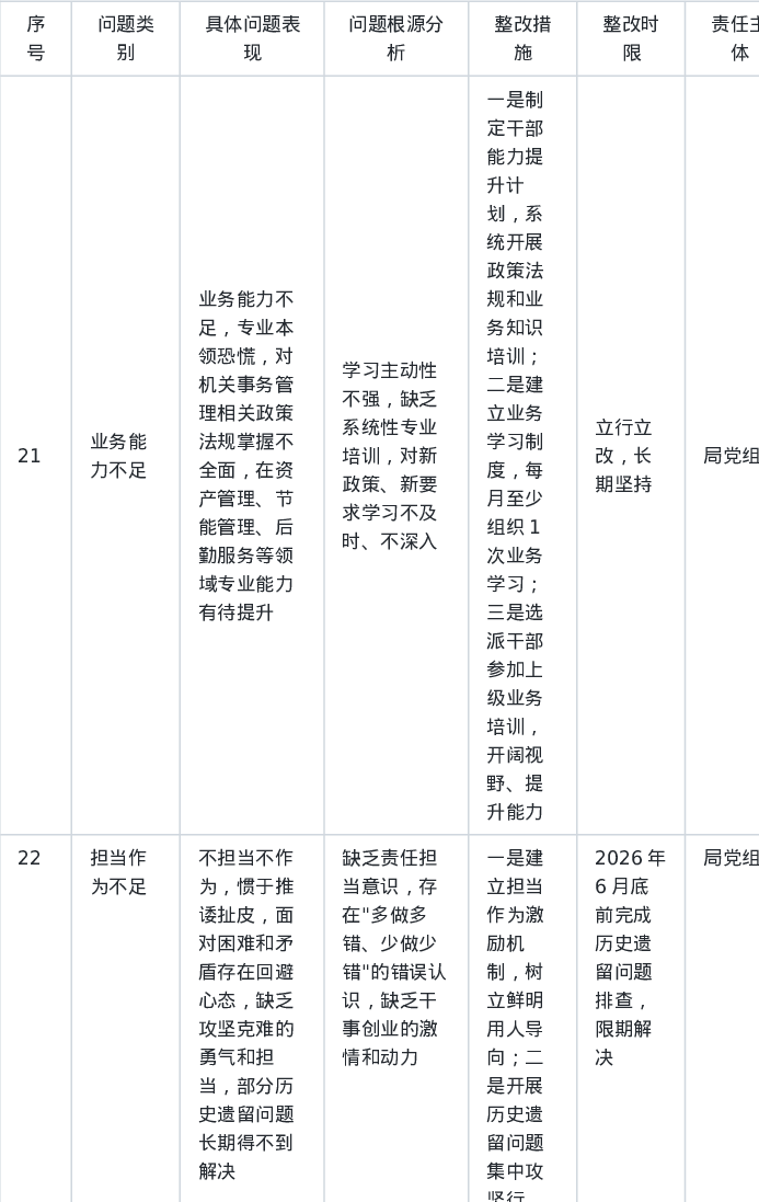 XX局领导班子树立和践行正确ZJG学习教育问题查摆清单