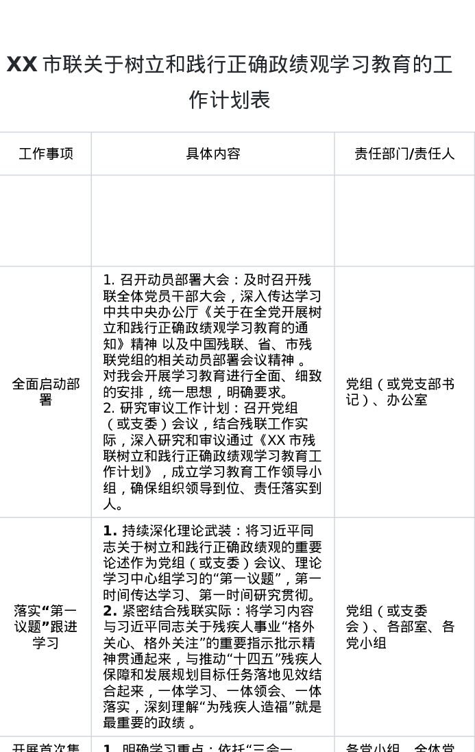 XX市残联关于树立和践行正确ZJG学习教育的工作计划表