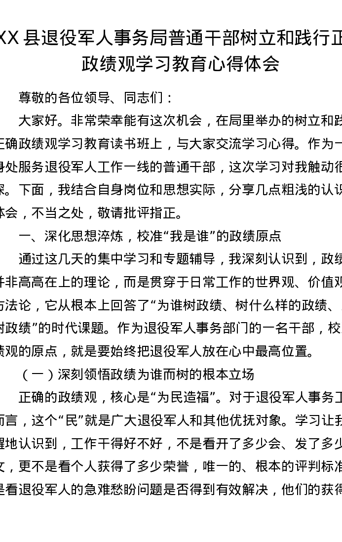XX县退役军人事务局普通干部树立和践行正确ZJG学习教育心得体会