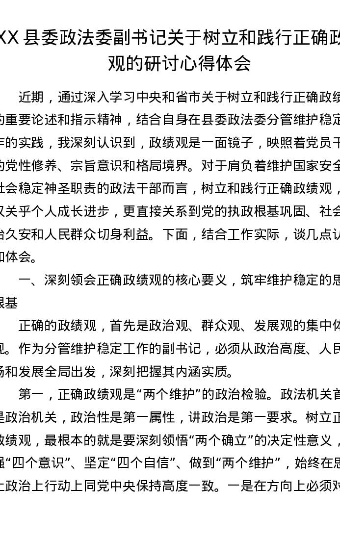 XX县委政法委副书记关于树立和践行正确ZJG的研讨心得体会