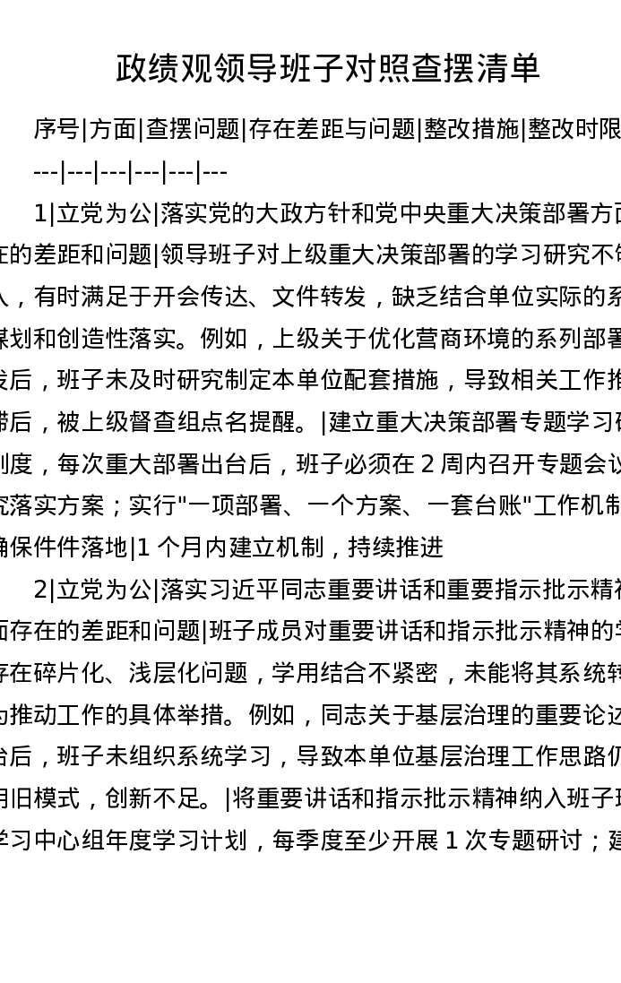 ZJG领导班子对照查摆清单