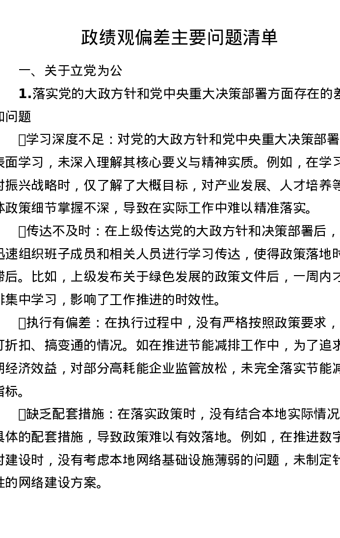 ZJG偏差主要问题清单(16个方面)