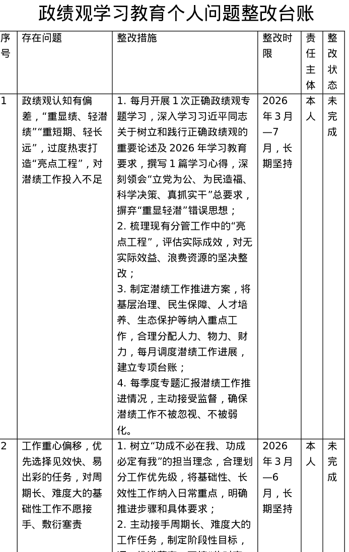 ZJG学习教育个人问题整改台账18项(含整改措施)表格