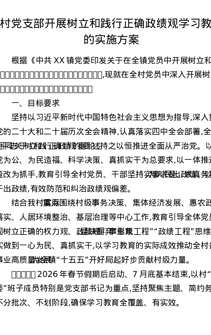 村党支部开展树立和践行正确ZJG学习教育的实施方案
