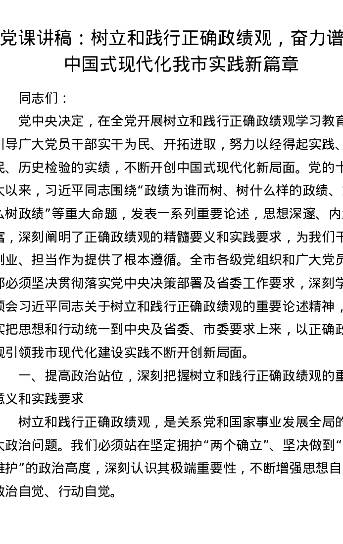 党课讲稿:树立和践行正确ZJG,奋力谱写中国式现代化我市实践新篇章