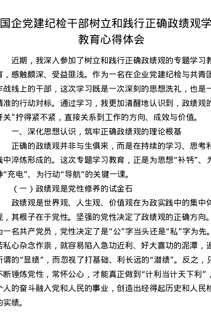 国企党建纪检干部树立和践行正确ZJG学习教育心得体会