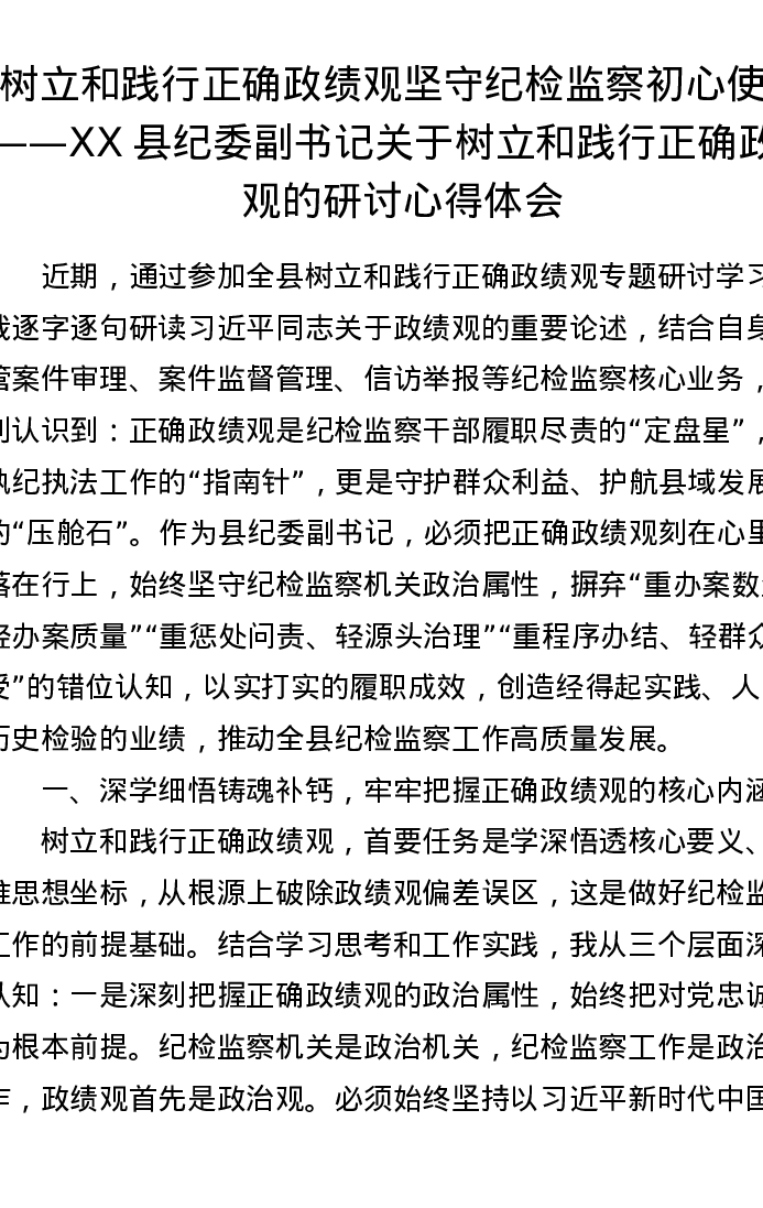 树立和践行正确ZJG 坚守纪检监察初心使命——XX县纪委副书记关于树立和践行正确ZJG的研讨心得体会