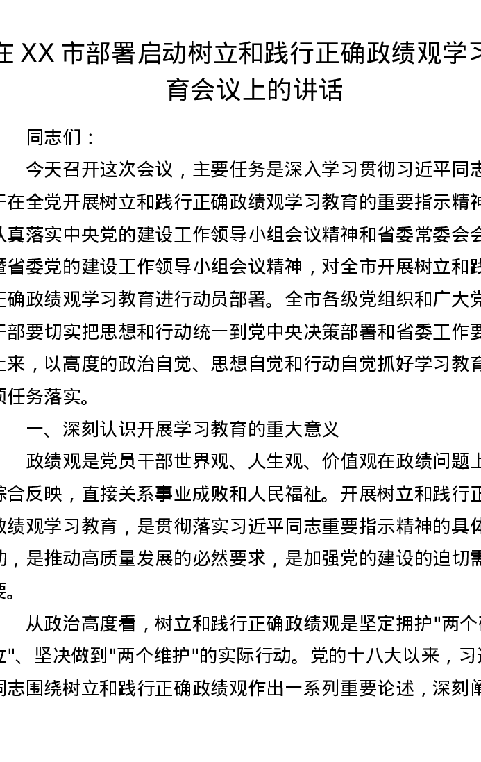 在XX市部署启动树立和践行正确ZJG学习教育会议上的讲话