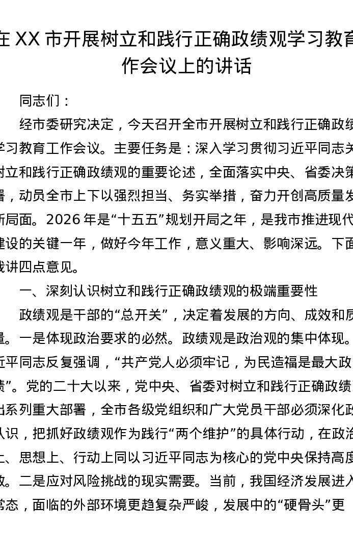 在XX市开展树立和践行正确ZJG学习教育工作会议上的讲话