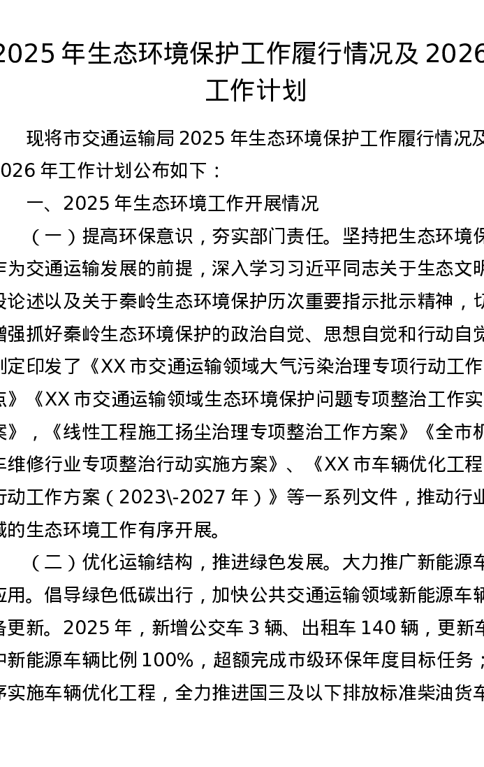 2025年生态环境保护工作履行情况及2026年工作计划