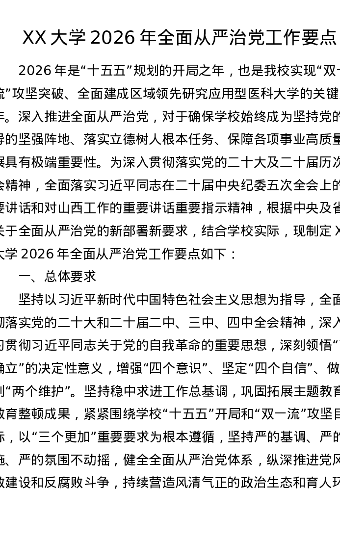XX大学2026年全面从严治党工作要点3
