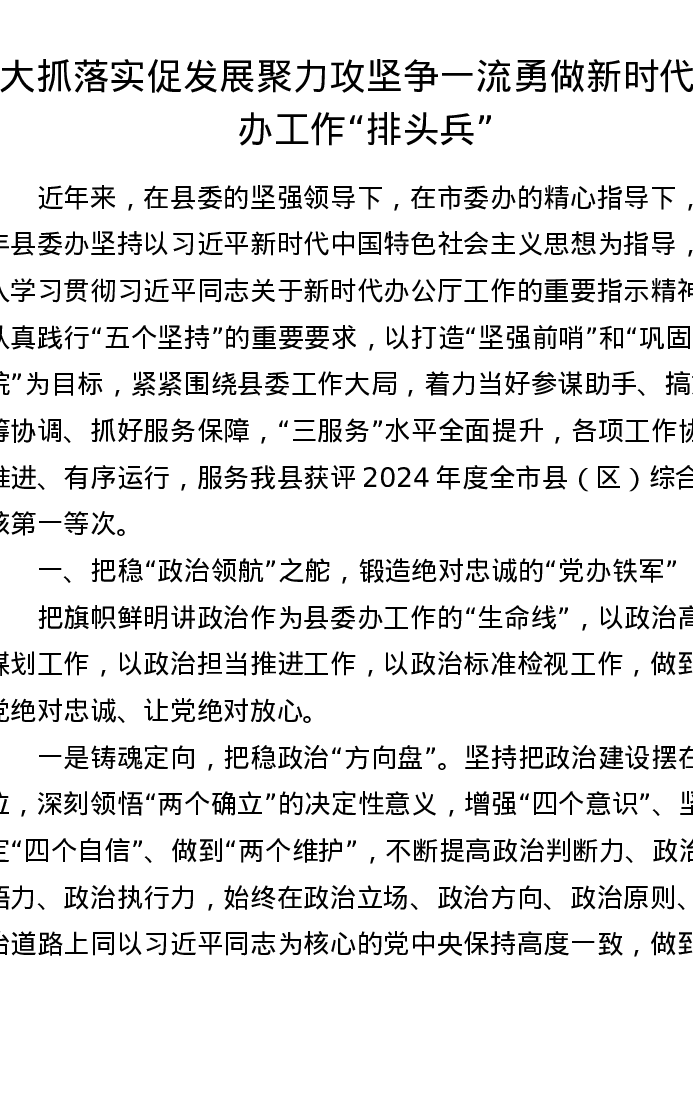 大抓落实促发展 聚力攻坚争一流 勇做新时代党办工作排头兵
