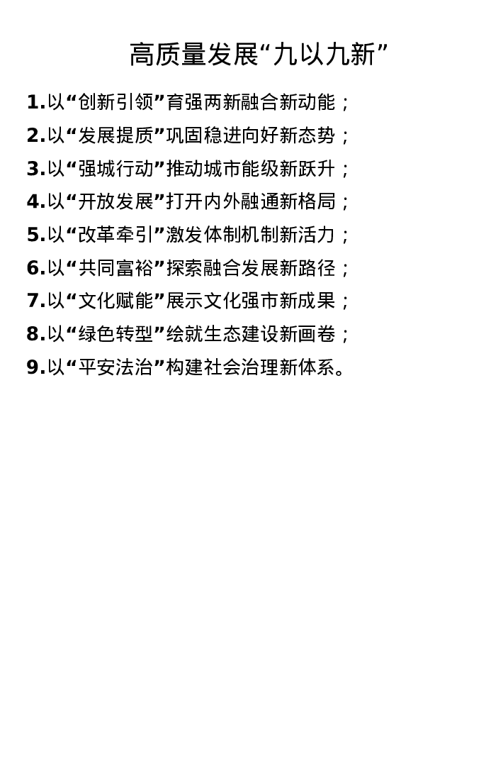 高质量发展九以九新